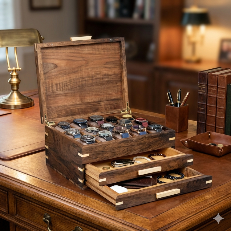 Completely handmade using natural solid walnut wood that will accompany you for many years, this luxury watch box is a great idea to organize, display and store your watches.