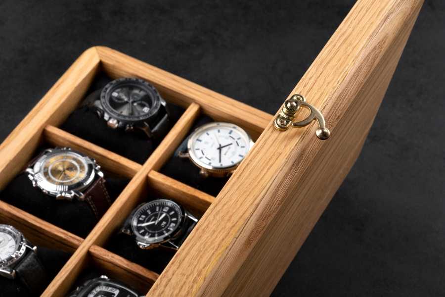Made from premium materials such as walnut and chestnut wood, the Premium Watch Box offers a sophisticated and elegant way to store your watches. The rich tones and natural grain of the wood add a touch of luxury to any room, making it a beautiful addition to your home or office decor.