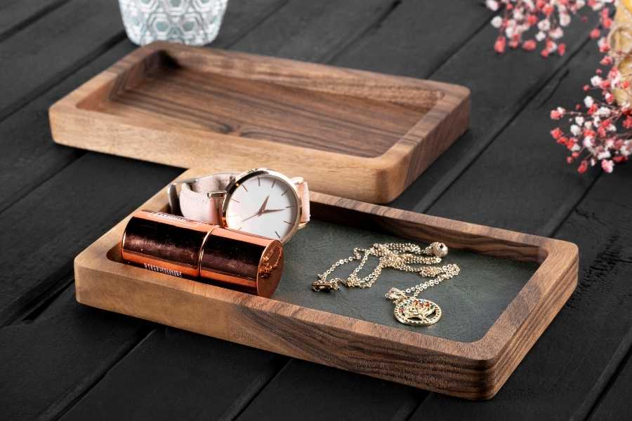 Designed with precision and style, desk valet trays offer an advanced solution for keeping your essentials organized. Beautify your space with the timeless charm of wood craftsmanship while maintaining practicality in your daily routine with our range of wooden valet trays.
