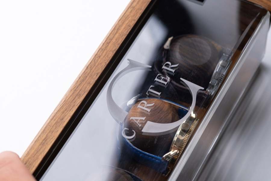 Whether you're a watch enthusiast looking to organize your collection or searching for the perfect gift, our Engraved Walnut Watch Box for 8 Watches and Acrylic Lid is the ideal choice. Treat yourself or someone special to this exquisite watch box and elevate your watch collection to new heights.