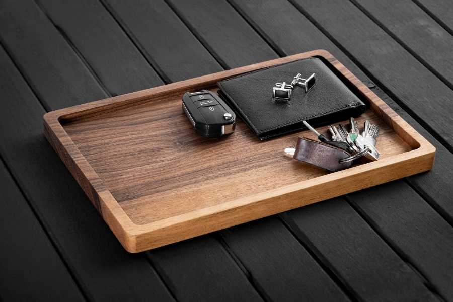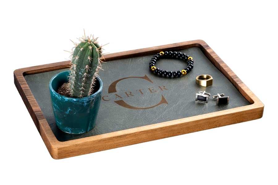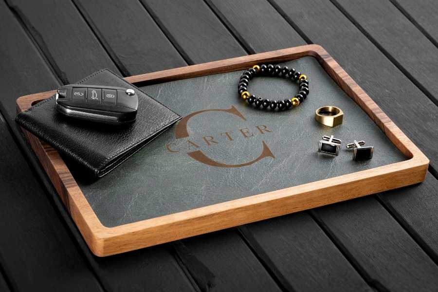 Indulge in timeless organization with our valet tray for men. Designed to complement your lifestyle, our wooden valet trays offer a perfect balance of elegance and practicality. Keep your daily essentials organized and easily accessible with a custom valet tray that will add a sophisticated touch to your space.