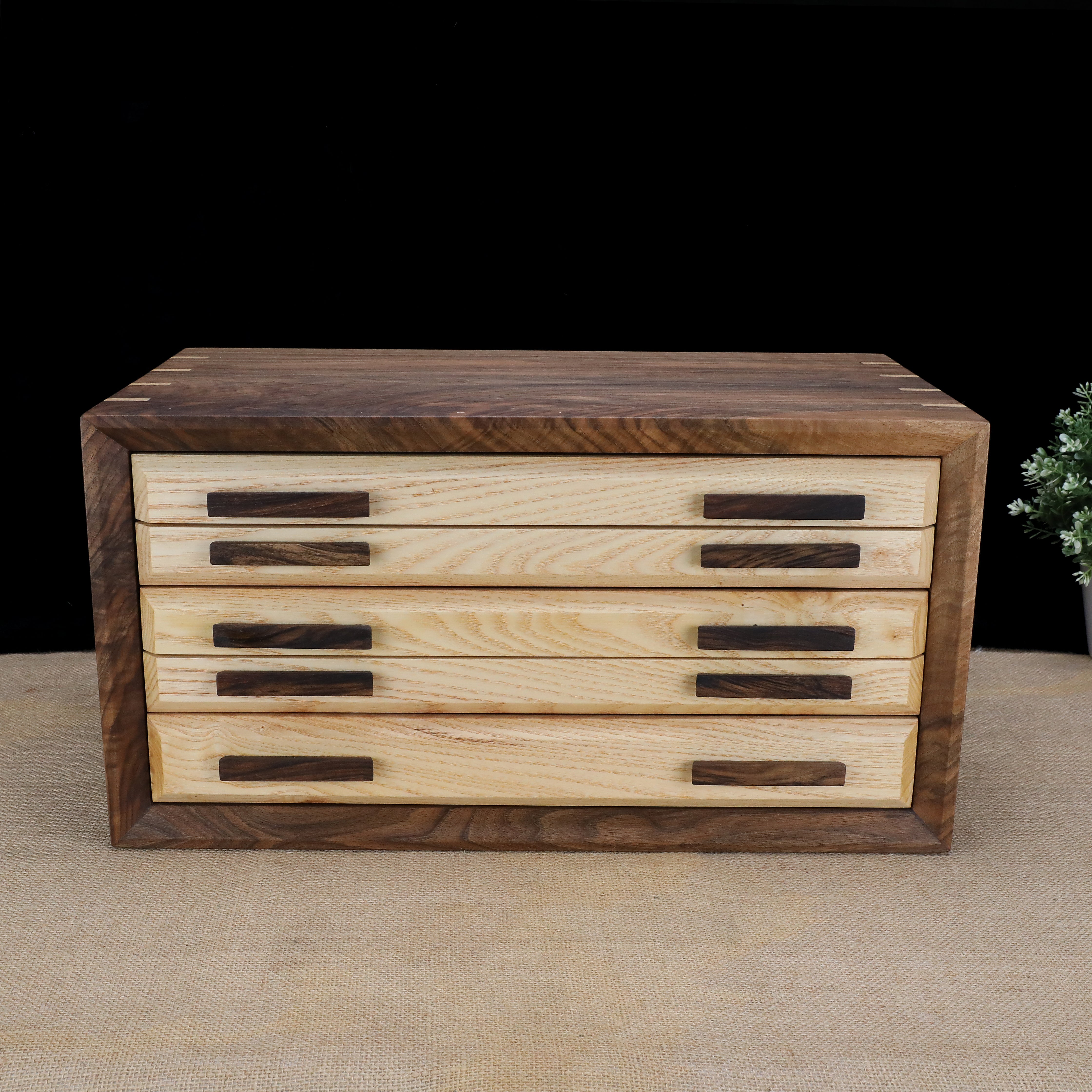 Wooden Jewelry Box with 5 drawers, Handmade Walnut Jewelry Box